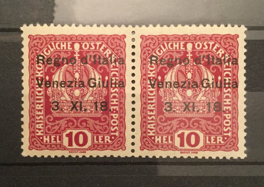 Vodoravni par marke od 10H Venezia Giulia 1918.