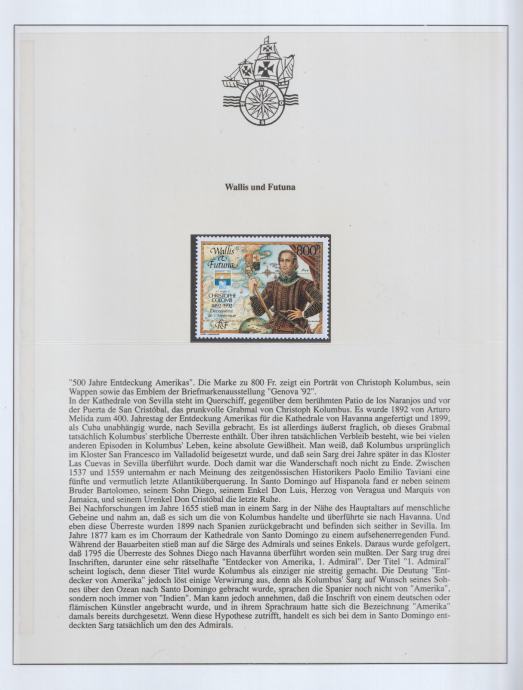 Wallis & Futuna – 500 godina otkrića Amerike (1992)