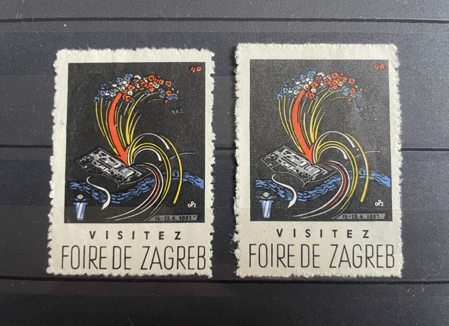 Dvije reklamne marke-vinjete PROLJETNI ZAGREBAČKI VELESAJAM 1957. Cijena ja za obje vinjete.0916550922. Poštarina prema cjeniku Hrvatske pošte ili osobno preuzimanje. Ne šaljem pouzećem.