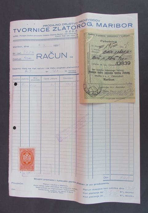 ZLATOROG MARIBOR SLOVENIA 1935. MEMORANDUM RAČUN