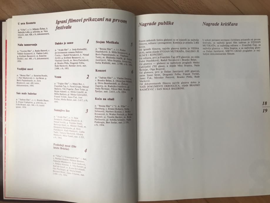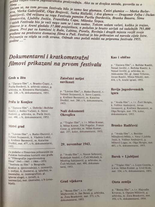 Knjiga sadrži info od 1. (1954.) do 25. (1978.) festivala jugoslavenskog filma.