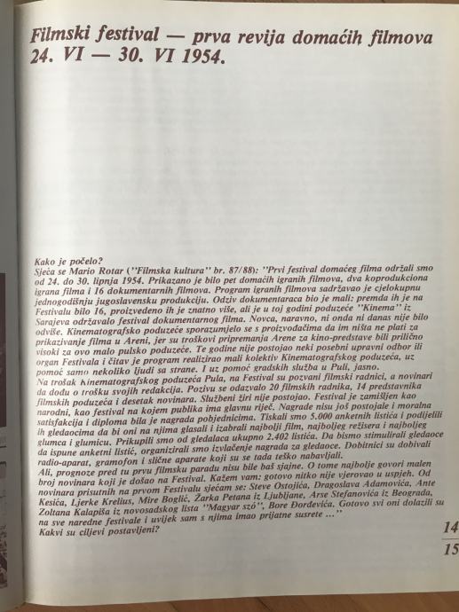 207 festivalskih dana u Puli,monografija o prvih 25 filmskih festivala