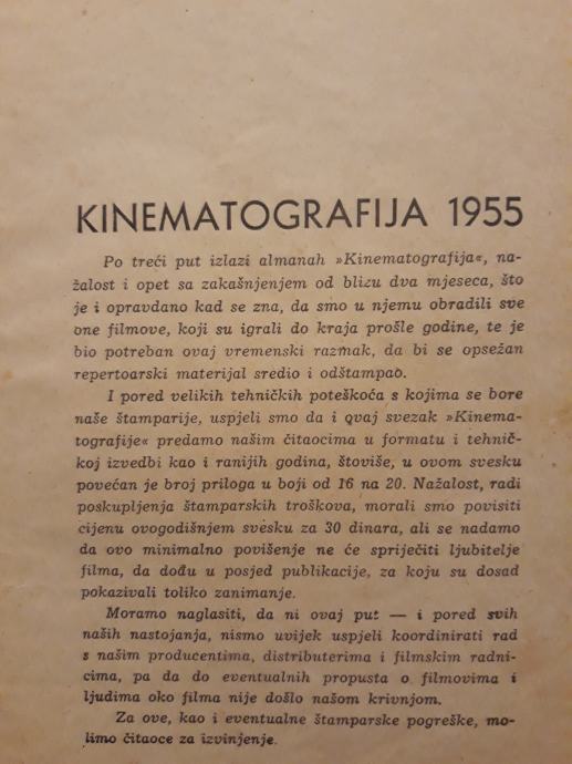 KINEMATOGRAFIJA 1955. / Uredio : Miroslav Modrinić