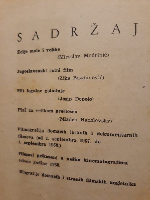 KINEMATOGRAFIJA 1958. / Uredio : Miroslav Modrinić