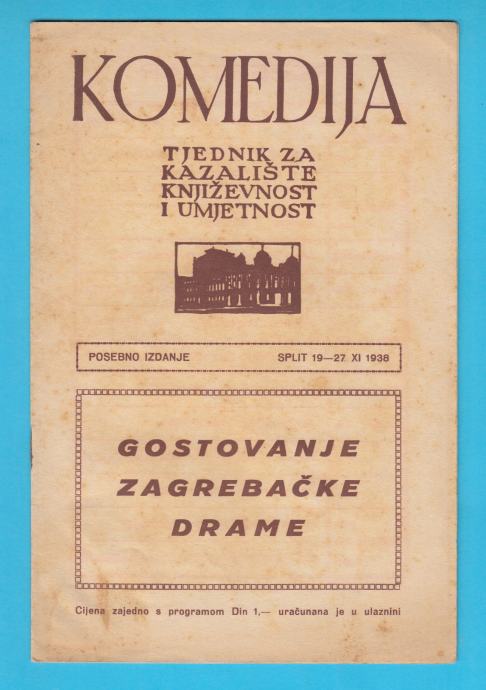 KOMEDIJA - Tjednik za kazalište, književnost i umjetnost * Split 1938.