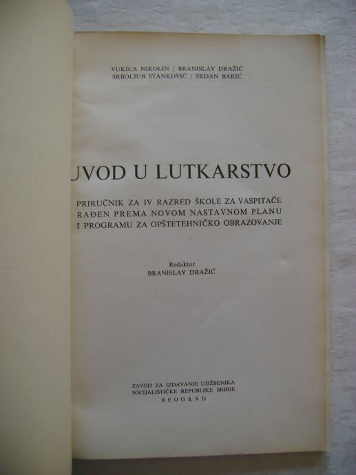 Vukica Nikolin / Branislav Dražić / Srboljub Stanković / Srđan Barić - Uvod u lutkarstvo; priručnik za 4. razred škole za vaspitače rađen prema novom nastavnom planu i programu za opštetehničko obrazovanje - izdavač Zavod za izdavanje udžbenika SR Srbije, Beograd 1966. godine, 17 x 24 cm, meki uvez, 82 stranice, bogato ilustrirano.