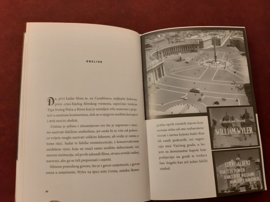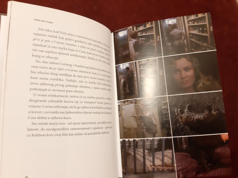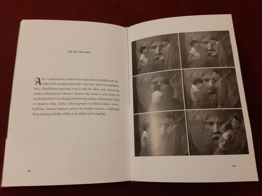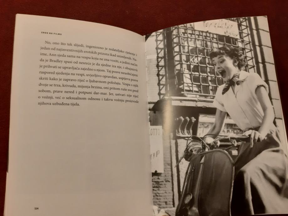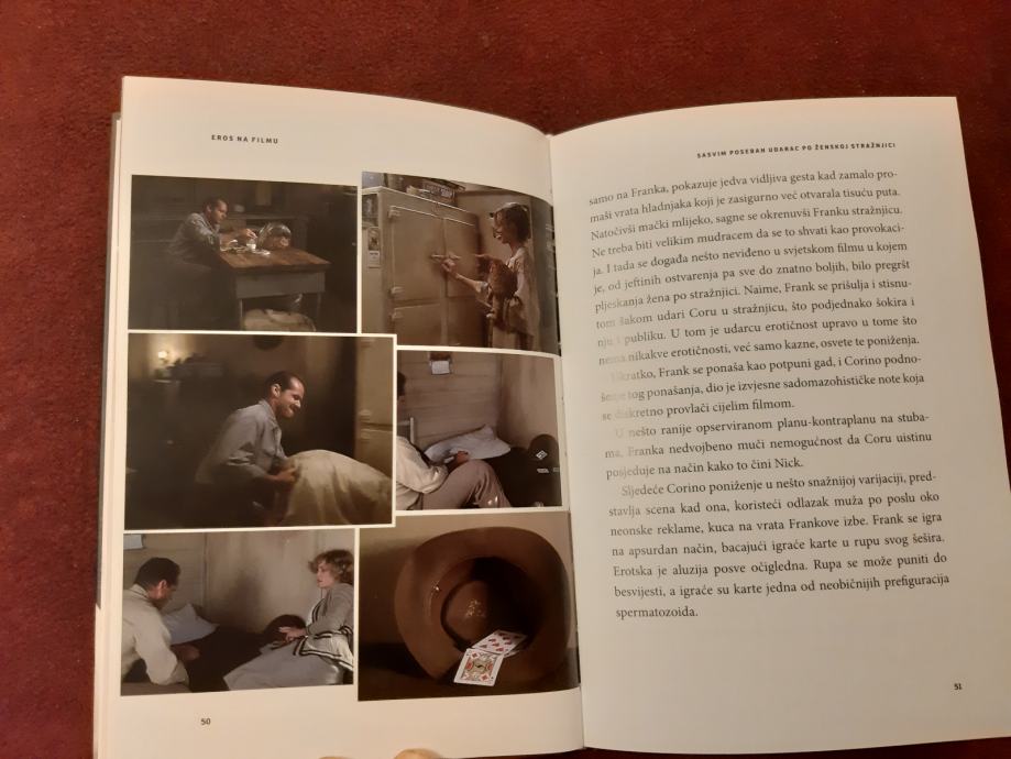 Ova je knjiga zapravo odlazak u terru incognitu filmova Poštar uvijek zvoni dvaput Boba Rafelsona i Praznik u Rimu Williama Wylera , te autoričina potraga za onom primordijalnom životnom snagom erosa tih filmova, razgrtanje njihovih tektonskih slojeva skrivenih erotskih naboja i značenja, cijele jedne semantike koja je u njenom pamćenju utisnula vrhunce s jednog kuhinjskog stola.