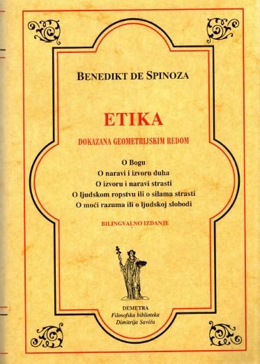 Prvo hrvatsko izdanje i prijevod cjelovitog teksta Spinozine "Etike" načinjeno je na osnovi izdanja Spinoza: Opera-Werke. Lateinisch und Deutsch. Zweiter Band. Herausgegeben von Konrad Blumenstock . Darmstadt: Wissenschaftliche Buchgesellschaft, 1967., koje se u odsustvu opće prihvaćenog kritičkog izdanja smatra i danas najboljim. Latinski tekst ovog izdanja zasnovan je na prvom izdanju Spinozinih djela koja su objavljena neposredno nakon Spinozine smrti, 1677. godine. Uz hrvatski prijevod koji slijedi Blumenstockovu redakciju latinskog teksta te latinski izvornik, u ovom izdanju dodane su i bilješke prevoditelja, neophodne za razumijevanje teksta. Etika dokazana geometrijekim redom najvažnije je i najzahtjevnije Spinozino djelo. Cijelo filozofiranje prikazuje se prvenstveno kao etičko, usmjereno na spoznaju čovjekove naravi i njegova najvišeg dobra te kao praktičko, usmjereno na razumijevanje konkretnog opstanka čovjekova i mogućnosti postizanja savršene ljudske naravi.Stranica: 534Jezik: ZagrebPismo: LatinicaStanje: Nova knjigaUvez: TvrdiGodina: 2000
