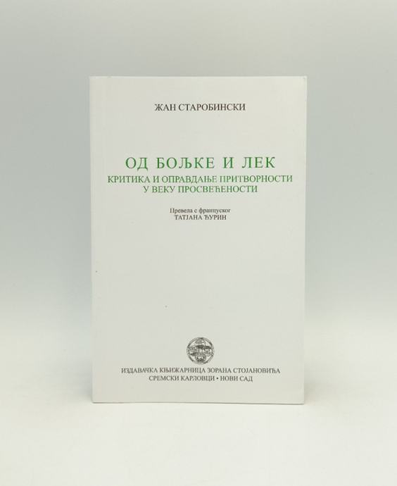 Jean Starobinski: Od boljke i lek: kritika i opravdanje pritvornosti u veku prosvećenostiNa osnovi niza primjera – kojih je moglo biti i više – namjeravam ovdje proučiti jezik i argumente koji su, u XVII i XVIII stoljeću, korišteni u kritici pritvornosti i „društvenih konvencija". Čitatelj ne treba očekivati sistematično istra-živanje, niti potpuni prikaz. Ja sam želio osluškivati riječi, analizirati stilove. Na nekim mjestima bilo je potrebno duboko zaroniti. Trebalo je da i Didro bude među autorima koje sam proučavao u ovim ogledima, ali podlegao sam izazovu da njemu posvetim posebnu knjigu koja tek treba biti objavljena.Stranica: 348Dimenzije: 11x18Jezik: Novi SadPismo: ĆirilicaStanje: Nova knjigaUvez: Meki s ovitkomGodina: 2014