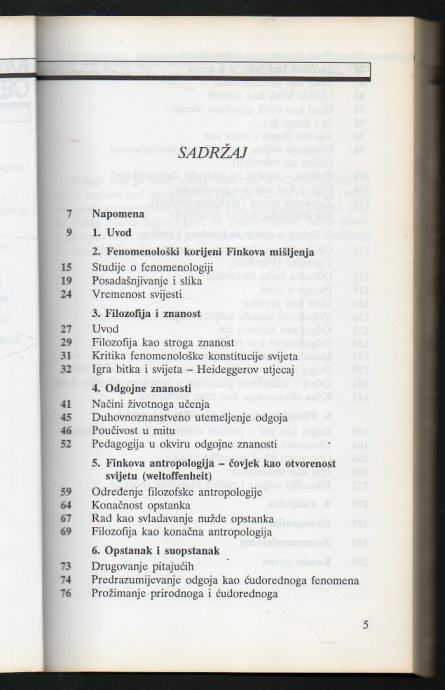 U knjizi je doktorska disertacija koju je autor napisao pod mentorstvom Danila Pejović, a obranio 2001. godine. U radu se slijede osnovne misli Finkove filozofije odgoja koja postavlja pitanje o nužnoj svezi filozofije i odgoja, naime utemeljuje filozofiju kao odgoj.