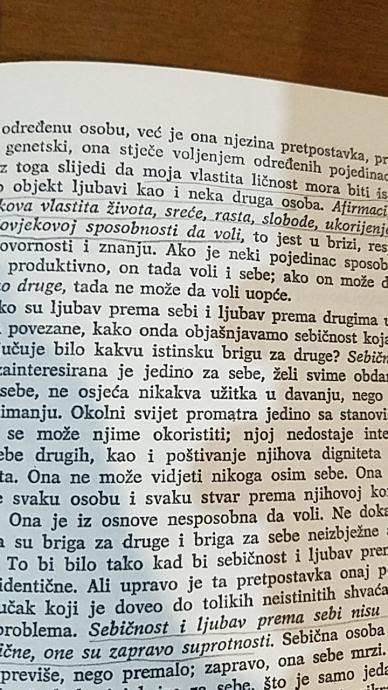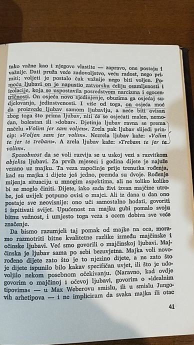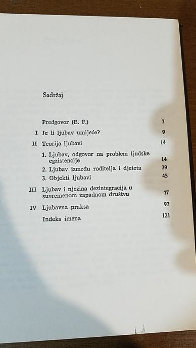 U ovoj knjizi Fromm propituje sve aspekte ljubavi: od romantične i erotske preko majčinske, očinske i bratske ljubavi do sebeljublja i ljubavi prema Bogu.