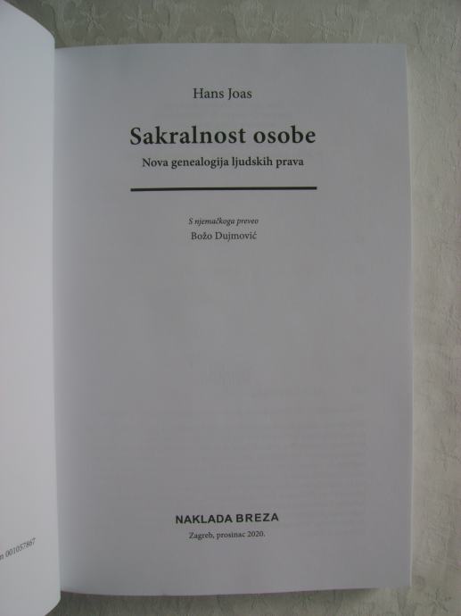 Hans Joas - Sakralnost osobe; Nova genealogija ljudskih prava - izdavač Naklada Breza, Zagreb 2020. godine, 15 x 21 cm, meki uvez, 243 stranice.