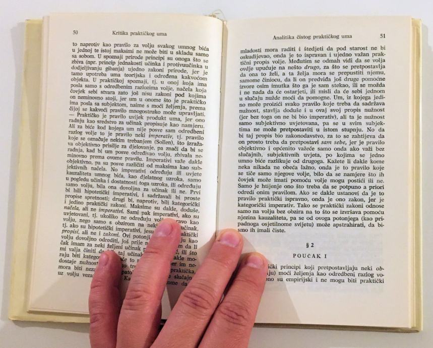 Kant je svoje etičko učenje iznio u djelu Kritika praktičkog uma, 1788. godine. U tumačenju etike Kant polazi od pojma dobre volje. Za njega je to dobro po sebi, bez ikakvih ograničenja, koje ima za svrhu jedino ispunjenje dužnosti, odnosno poštivanje zakona. Moralno se djelovanje zasniva na samokontroli jer svaki čovjek već ima a priorni zakon koji nam naređuje kako da se ponašamo. Taj moralni zakon Kant naziva kategoričkim imperativom. Kant je dao više definicija kategoričkog imperativa. Jedna od tih je: „Radi tako da princip tvoga rada može postati princip rada svih drugih“. Mada svaki čovjek ima u svojoj svijesti moralni zakon, od njegove volje zavisi hoće li ga poštovati ili ne. Tako je moralni zakon preduvjet „praktičkog uma“.