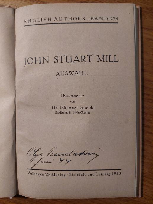 John Stuart MILL - Auswahl / Herausgegeben von Dr. Johannes SPECK