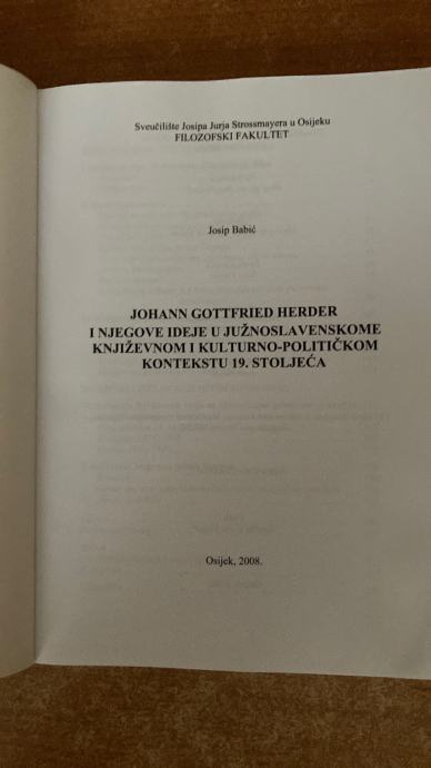JOSIP BABIĆ:JOHANN GOTTFRIED HERDER I NJEGOVE IDEJE U JUŽNOSLAVENSKOM