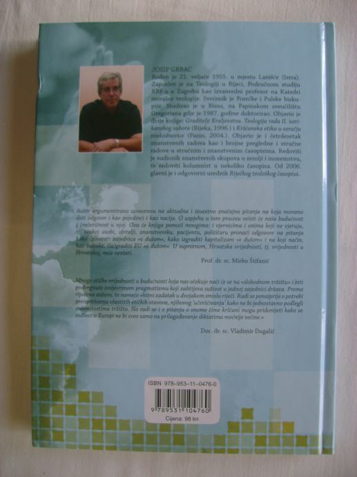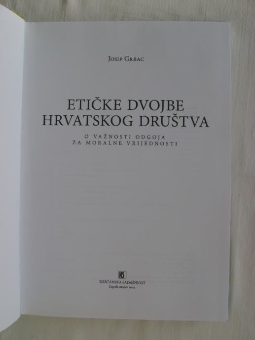 Josip Grbac - Etičke dvojbe hrvatskog društva; o važnosti odgoja za moralne vrijednosti - izdavač Kršćanska sadašnjost, Zagreb 2009. godine, 17 x 25 cm, tvrdi uvez, 201 stranica.