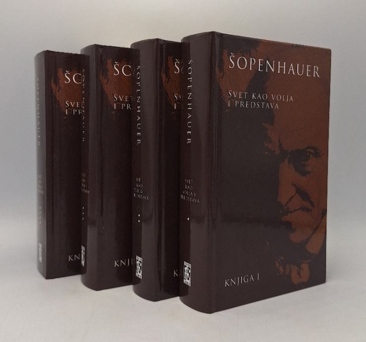Arthur Schopenhauer:Svet kao volja i predstava I-IVSvet kao volja i predstava je životno djelo jednog od najvećih filozofa ljudske civilizacije. Kritika Kantovog djela, promišljanja o svemu što bi moglo zanimati filozofiju. Arthur Schopenhauer smatra se utemeljiteljem metafizičkog pesimizma. U umjetnosti vidi jedini spas od bezrazložnog svijeta. Stranica: 463+437+576+461Dimenzije: 12x20Jezik: BeogradPismo: LatinicaStanje: Nova knjigaUvez: TvrdiGodina: 2018