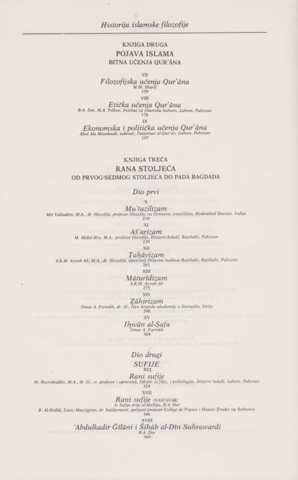 M. M. Šarif: Historija islamske filozofije, A. C., Zagreb 1990.