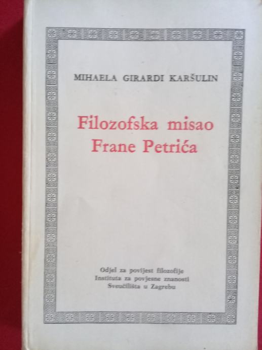 Prodajem knjigu Mihaele Girardi Karšulin, Filozovska misao Frane Petrića. Knjiga je dobro očuvana.