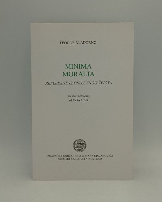 Theodor Adorno: Minima moraliaRefleksije iz oštećenog životaTužna znanost od koje mom prijatelju ponešto predajem, odnosi se na područje koje od pamtivijeka imađaše ugled kao autentično područje filozofije, a nakon njenog preobražaja u metodu prepušteno je intelektualnom nipodaštavanju, sentencioznom nahođenju i na kraju zaboravu: na učenje o ispravnom životu. Ono što se nekad za filozofa zvalo život, postalo je sfera privatnog i potom još samo sfera potrošnje, koja se dotjeruje kao dodatak materijalnom procesu proizvodnje, bez autonomije i bez sopstvene supstance. Ko hoće saznati istinu o neposrednom životu mora ispitati njegovo otuđeno obličje, objektivne sile, koje do u najskriveniji kutak određuju individualnu egzistenciju. Stranica: 324Dimenzije: 12x18Jezik: Sremski KarlovciPismo: LatinicaStanje: Nova knjigaUvez: Meki s ovitkomGodina: 2002