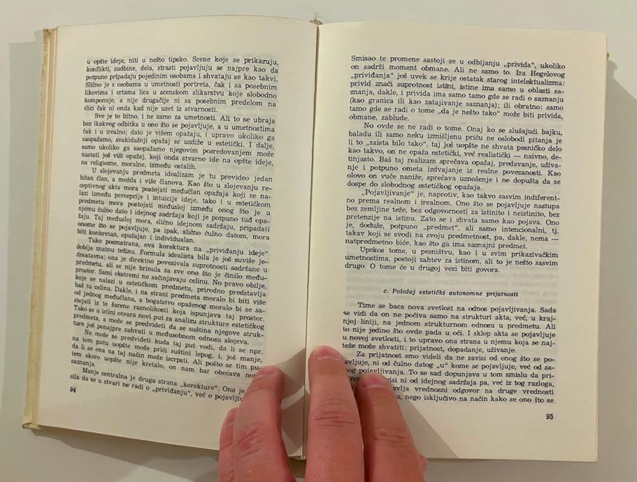 Estetika spada u najznacajnija dela savremene literature iz te oblasti. Za nju bi se moglo reci da cini poslednji sastavni deo sistema filozofije ovog neumornog radnika kome nije izmakla skoro nijedna filozofska disciplina. To je razlog da se cita i pazljivo proucava ovo znacajno delo, koje pleni citaoca brizljivom kategorijalnom analizom, izvanrednim bogatstvom u distinkcijama, temeljitoscu estetickih izvodjenja, diferenciranim istrazivanjem na putu fenomenoloskog trazenja sustina.