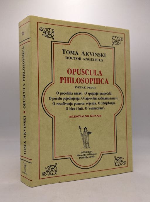 Toma Akvinski: Opuscula philosophica IIO počelima naravi - O spajanju prapočela - O počelu pojedinjenja - O tajnovitim radnjama naravi - O rasuđivanju pomoću zvijezda - O ždrijebanju - O biću i biti - O 'sedmicama'. Preveo Augustin Pavlović. Stranica: 450Dimenzije: 16.5x24.5Jezik: ZagrebPismo: LatinicaStanje: OdličnoUvez: Tvrdi s ovitkomGodina: 1996