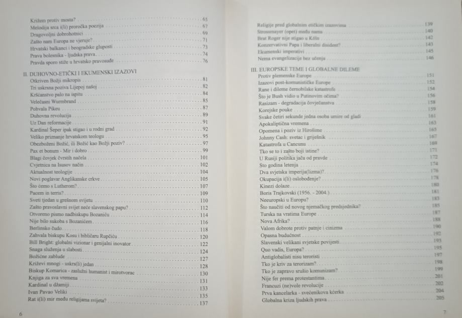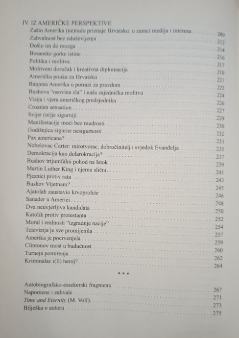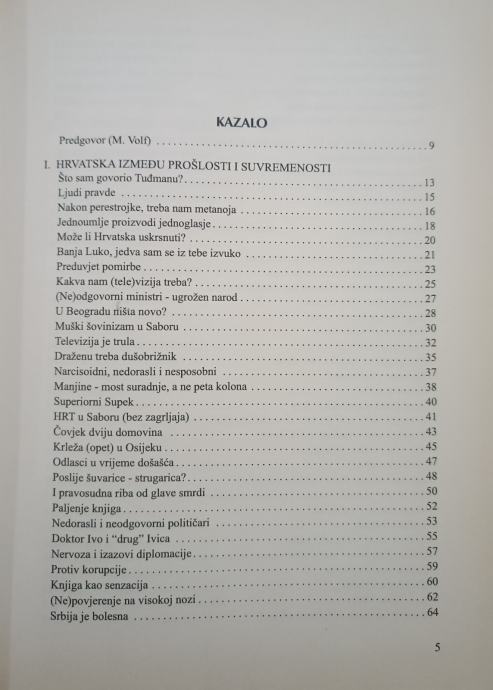 Većina tekstova u ovoj knjizi su kolumne publicirane u dnevniku "Glas Slavonije", počevši od kraja 2000. godine pa do pred sam kraj 2005. godine. Ostali tekstovi objavljeni su u brojnim hrvatskim dnevnicima i časopisima. Autor komentira dnevno politička zbivanja u zemlji i svijetu.