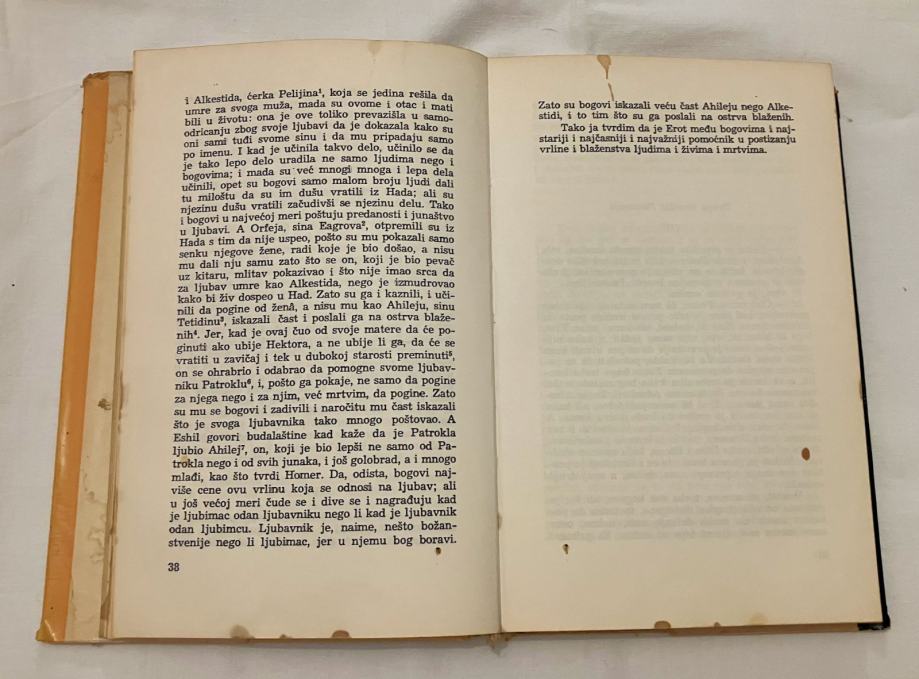Tri Platonova dijaloga. Predgovor, prijevod i napomene dr. Miloš N. Đurić. Ijon ili o Ilijadi. Gozba ili o ljubavi. Fedar ili o lepoti. Platonova Gozba ulazi u krug najboljih filozofskih djela ikad napisanih. Platonove ideje o ljubavi i ljepoti povezane s dobrotom i mudrošću razotkrivaju čovjekov put prema realizaciji sebe kao cjelovitog i prosvijetljenog bića kroz neprestanu potrebu samousavršavanja i vladanja sobom. Taj put vodi od tjelesne ljubavi i ljepote do ljubavi prema ljepoti duše. Od nje pak vodi do ljubavi prema spoznaji te, naposljetku, do ljubavi prema ideji ljepote. Gozba je ujedno najdublji opis klasične grčke etike i najviša objava helenske umjetničke estetike. Kao takva, imala je neizmjeran utjecaj na brojne kasnije mislioce i stvaraoce još od antičkih vremena, a naročito je obilježila razdoblje Renesanse. U ovom izdanju objavljena su još dva Platonova dijaloga Ijon i Fedar.