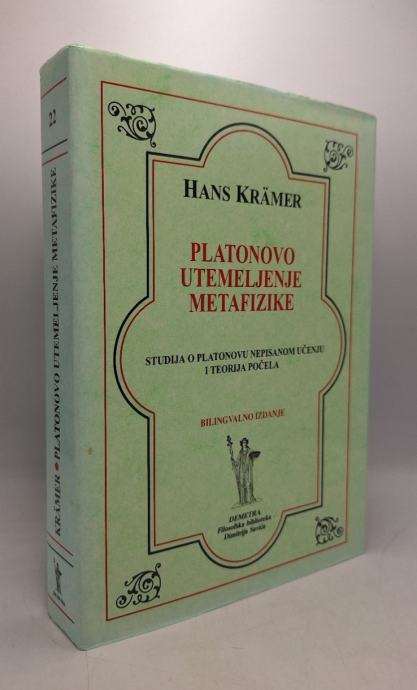 Hans Kramer: Platonovo utemeljenje metafizikeNema nijednog istraživača antičke filozofije ili čitatelja Platona koji ne bi znao tko je Hans Kramer, koji od 1969. djeluje kao profesor na Sveučilištu u Tubingenu. Već je njegov prvi monumentalni svezak, Arete bei Platon und Aristoteles iz 1959., knjiga visokog stupnja zrelosti, makar njegov prvijenac, neposredno i neprolazno skrenula pažnju znanstvenog svijeta na njega. Dva potonja velika djela, Der Ur-sprung der Geistmetaphvsik (Amsterdam 1964) te Platonismus und hellenistische Philosophie (Berlin-New York 1971), uveliko su potvrdila očekivanja stručnjaka, a njegova prerada odjeljka o Starijoj akademiji u Uber-wegovoj Povijesti filozofije rezultirala je najopširnijom, najpotpunijom i najoriginalnijom monografijom koja je do sada napisana na tu temu.Kramerov "talijanski Platon" — tako smo ovu knjigu krstili autor i ja u našoj živoj prepisci — nudi čitatelju mnogobrojna iznenađenja, i to iz više razloga. Kramer se uistinu nije ograničio na to da samo iznova prikaže rezultate do kojih je došla Tiibingenska škola, već ih je iz temelja promislio s obzirom na cilj kojemu knjiga treba poslužiti, a pri tome je otišao još dalje ponudivši mnogošta neobjavljenog; to se odnosi posebice na navlastito filozofsko-teorijsku razradu njegovih izučavanja Platonove teorije počela. Ono što je iz toga nastalo nije samo manifest Tiibingenske škole, koji kruži oko već osiguranih postignuća, već otvara povrh toga čitav niz perspektiva koje mogu potaknuti mnoštvo novih radova.(Giovanni Reale, Introduzione: Il "Platone italiano" di Hans Kramer) Stranica: 435Dimenzije: 17.5x25Jezik: ZagrebPismo: LatinicaStanje: OdličnoUvez: Tvrdi s ovitkomGodina: 1997