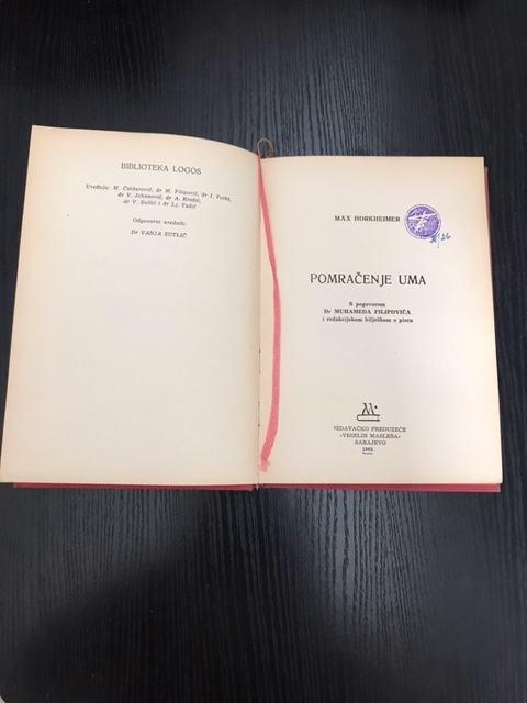 Knjiga Pomračanje uma autor Max Horkheimer,biblioteka logos,izdana u sarajevu 1963.
