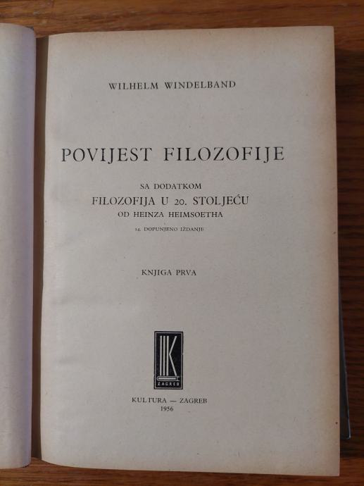 - Wilhelm WINDELBAND : Povijest FILOZOFIJE sa dodatkom : FILOZOFIJA u 20. stoljeću od Heinza HEIMSOETHA