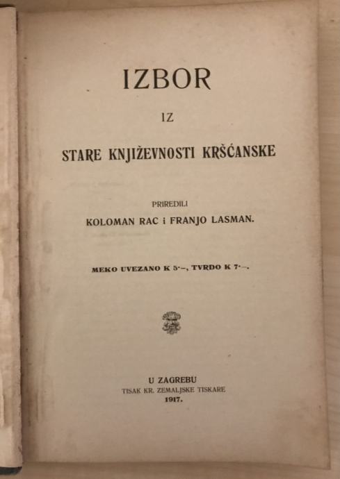 Rac / Lasman : Izbor iz stare književnosti kršćanske