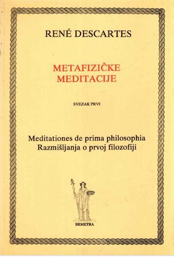 Metafizičke meditacije su jedno od Descartesovih najznačajnijih dijela. Objavljene su 1641.g. na latinskom jeziku, a u samom djelu su se pojavili i komentari najznačajnijih filozofa i teologa, sa odgovorima samog autora na primjedbe. Samo djelo je posvećeno «Najmudrijim i najsvetijim muževima dekanu i doktorima Svetog Teološkog Fakulteta u Parizu». Povod i cilj samih meditacija bile su pobijanje hereza aleksandrinista i averoista , sukladno onome što je papa Leo XI proglasio na 8. sjednici Lateranskoga koncila, te izričito nalaže kršćanskim misliocima da se bore protiv krivovjerja. Sam Descartes smatra da je puno bolje boriti se protiv krivovjerja filozofijom, nego teologijom, zato što razum daje puno bolje argumente nego Sveti Spisi, jer i drugi imaju svoje svete spise, i onda se radi o kružniku. (Descartes, 1994:4) U 6 meditacija Descartes izlaže glavninu svog nauka, dokaze o Bogu i duši, o kojima se nešto govorilo i u Raspravi o metodi, ali ne do kraja. Prvo je htio vidjeti kakve će biti reakcije na njegove argumente, a zatim u potpunosti izložiti nauk u Meditacijama. U prvoj meditaciji, razmišljanju, izlažu se uzroci zbog kojih možemo sumnjati u sve stvari, osobito tvorevine. Iako se korist od takve sumnje isprve ne opaža, ipak je ona veoma velika zbog toga što nas oslobađa svih predrasuda i pripravlja nam najlakši put da odvojimo osjetila od samog duha; napokon, ona postiže da više ne možemo sumnjati o onim stvarima za koje poslije otkrijemo da su istinite. Drugo razmišljanju iznosi dokaze za besmrtnost duše te djeljivost/ nedjeljivost duše od tijela. U trećem razmišljanju se posvećuje dokazu za Božju opstojnost. To je jedno od najvažnijih razmišljanja u Meditacijama. Četvrto razmišljanje dokazuje kako su istinite sve one stvari koje shvaćamo jasno i odjelito, a isto tako izlaže u čemu se sastoji razlog lažnost. U petom, pored toga što se objašnjava općenito uzeta narav, iznosi se i novi dokaz o Božjoj opstojnosti. U šestom razmišljanju, napokon, razlikuje se razumijevanje od maštanja; opisane su oznake razlika; pokazuje se stvarna razlika između duha i tijela. (Descartes, 1994:22-30).Stranica: 184Jezik: ZagrebPismo: LatinicaStanje: Nova knjigaUvez: MekiGodina: 1993
