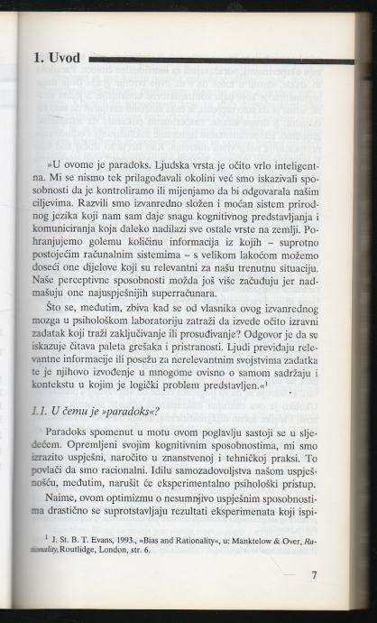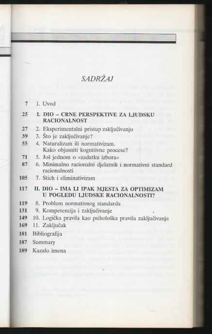 Znanstvena rasprava o prirodi prirodnoga zaključivanja, odnosno kognitivnih djelatnosti idealnoga "super-mozga". Kognitivne sposobnosti koje su autoru u ovom kontekstu važne uključuju procese formiranja, održavanja i promjene vjerovanja, te procese donošenja odluka. Ove su kognitivne sposobnosti i djelatnosti predmet interesa različitih znanosti - od filozofske epistemologije i filozofije uma, do kognitivne psihologije. Knjiga je podijeljena u dva dijela: prvi, pod naslovom "Crne perspektive za ljudsku racionalnost", uz poglavlja općeteorijske naravi, iznosi stajališta autora koji smatraju da je racionalnost ili posve relativna, ili je njezin standard potrebno reducirati na najmanju moguću mjeru. Drugi pak dio propituje mogućnosti optimističnoga stava u pogledu racionalnosti, izlaže teorije koje zastupaju takva gledišta i konačno iznosi stav autora knjige koji u osnovi zastupa gledište ovih posljednjih, ali smatra da postojeće teorije treba značajno modificirati.