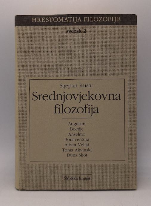 Stjepan Kušar: Srednjovjekovna filozofijaFilozofija u onom povijesnom razdoblju koje se običava zvati srednji vijek nije se oslobodila i vjerojatno se još zadugo neće osloboditi stoljećima njegovanih predrasuda i slika koje su se stvarale i gomilale kako na strani onih koji su to povijesno razdoblje gledali sa simpatijama tako i onih koji su ga smatrali dekadentnom epohom između „svijetle" klasične grčko-rimske antike i novoga vijeka koji je započeo otkrivanjem svojih klasičnih temelja. Kakvu sliku pokazuju uhodani klišeji intelektualne tromosti? Za jedne je to idealno vrijeme crkvenog naučavanja, a za druge nesretno razdoblje žrtve razuma i slobodne misli; zauvijek izgubljeno i pod novovjekovljem pokopano svjetlo „kršćanske sinteze" na jednoj strani i očita manifestacija „srednjovjekovnog mračnjaštva" za vrijeme kojeg je Minervina sova bila u krletki iz koje je izletjela tek u takozvanom humanizmu i renesansi. To je više od deset stoljeća povijesti između Plotina na jednoj i Petrarke i Luthera i Descartesa na drugoj strani......SADRŽAJFilozofija u srednjem vijeku (Stjepan Kušar)Aurelije Augustin (Stjepan Kušar)Izbor iz djela Aurelija AugustinaO slobodnoj volji (prijevod Stjepan Kušar)Anicije Manlije Severin Boetije (Miljenko Belič)Izbor iz djela Anicija Manlija Severina BoetijaO hebdomadama (prijevod Miljenko Belić)Anselmo Canterburyski (Stjepan Kušar)Izbor iz djela Anselma CanterburyskogProslogion - Nagovor (prijevod Stjepan Kušar)Bonaventura (Stjepan Kušar) Izbor iz Bonaventurina djelaO svođenju umijeća na teologiju (prijevod Matej Jelinčić)Albert Veliki (Stjepan Kušar)Izbor iz djela Alberta VelikogRasprava o usudu (prijevod Ivan Macan)Toma Akvinski (Tomo Vereš)Izbor iz djela Tome Akvinskog (prijevod Tomo Vereš)O biću i bitiO diobi spekulativne filozofije Kako ljudska duša spoznaje tjelesni svijet?Ivan Duns Skot (Josip Barbarić)Izbor iz djela Ivana Duns SkotaRasprava o Prvom Počelu (prijevod Josip Barbarić)Bilješka o autorima Stranica: 659Dimenzije: 15x21.5Jezik: ZagrebPismo: LatinicaStanje: OdličnoUvez: Tvrdi s ovitkomGodina: 1996