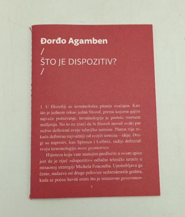 Giorgio Agamben: Što je dispozitiv? »Dispozitivi u disciplinarnom društvu preko niza praksi i diskursa, znanja i vježbi, smjeraju na kreaciju pokornih, no slobodnih tijela koja pridobivaju svoj subjektni identitet i »slobodu« u samom procesu vlastita potčinjavanja.« Stranica: 23Dimenzije: 10x15Jezik: BeogradPismo: LatinicaStanje: Nova knjigaUvez: MekiGodina: 2019