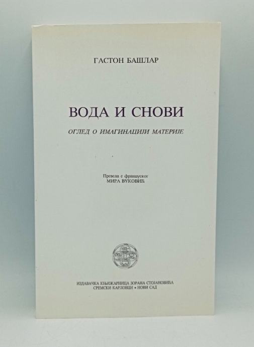 Gaston Bachelard: Voda i snoviOgled o imaginaciji materijeImaginativne moći našeg duha razvijaju se u dva veoma različita pravca. Jedne dobivaju zamah pred novinom; njih zabavlja živopisnost, raznolikost, neočekivani događaj. Imaginacija koju one pokreću uvijek opisuje neko proljeće. U prirodi, daleko od nas, već žive, one proizvode cvjetove. Druge imaginativne moći kopaju po dubini bića; u biću traže ono prvobitno i ono vječno. Vladaju godišnjim dobima i poviješću. U prirodi, u nama i izvan nas, one proizvode klice u kojima je forma uronjena u supstancu, u kojima je forma unutrašnja. Filozofski govoreći, mogli bismo razlikovati dvije vrste imaginacije: imaginaciju koja daje život formalnom uzroku i imaginaciju koja daje život materijalnom uzroku ili kraće formalnu i materijalnu imaginaciju. Stranica: 242Dimenzije: 14x23Jezik: Novi SadPismo: ĆirilicaStanje: Nova knjigaUvez: MekiGodina: 1998