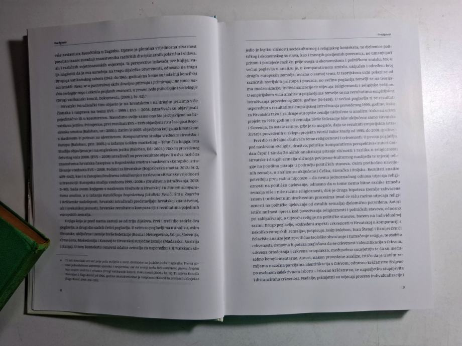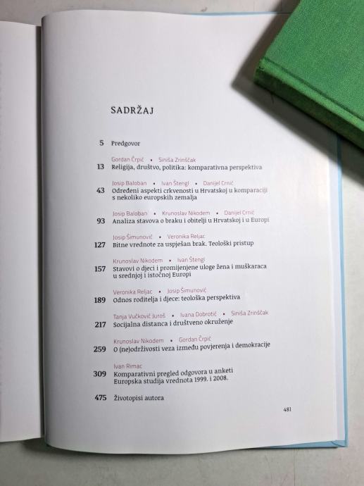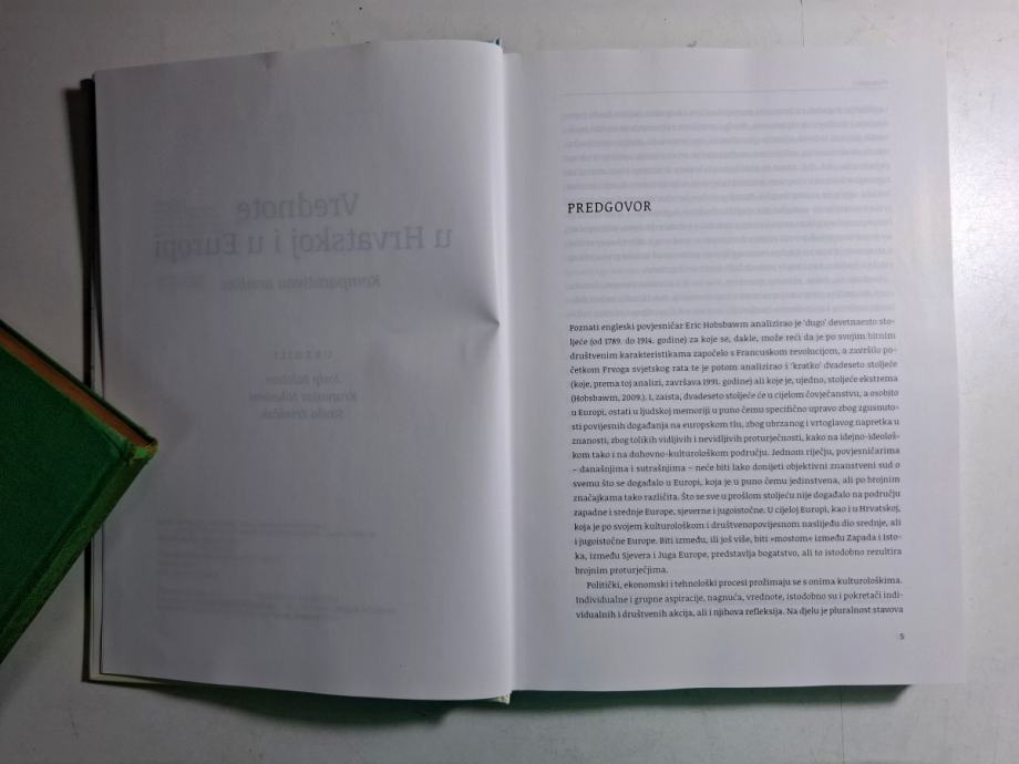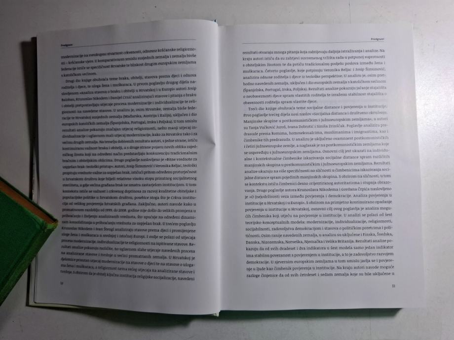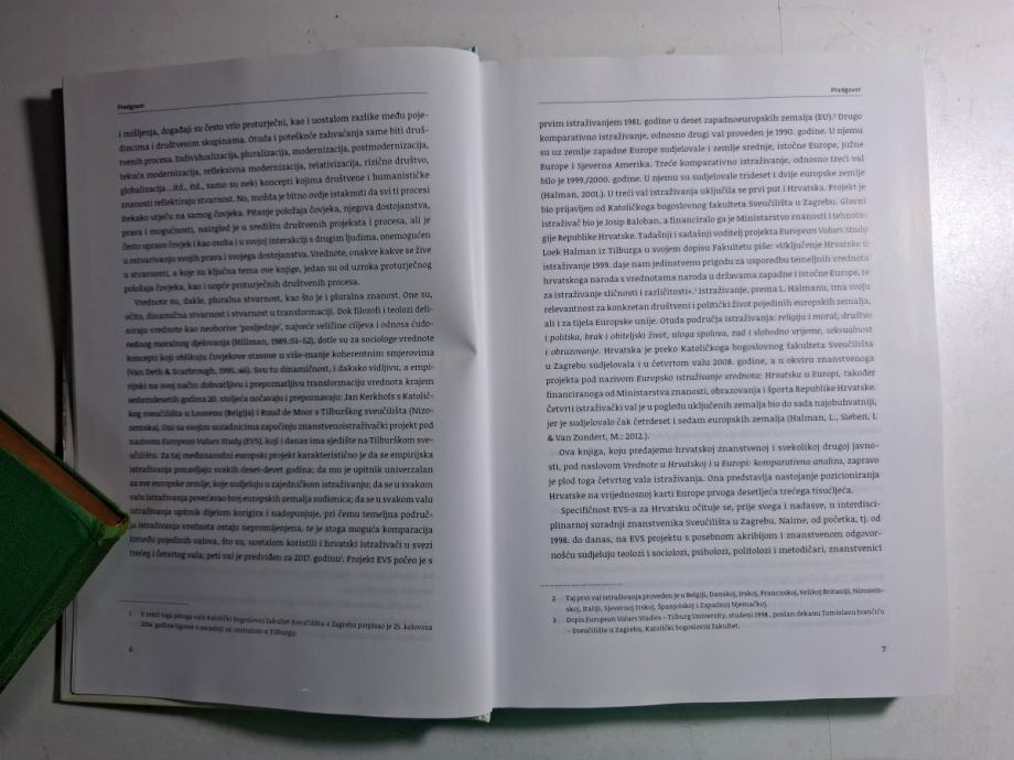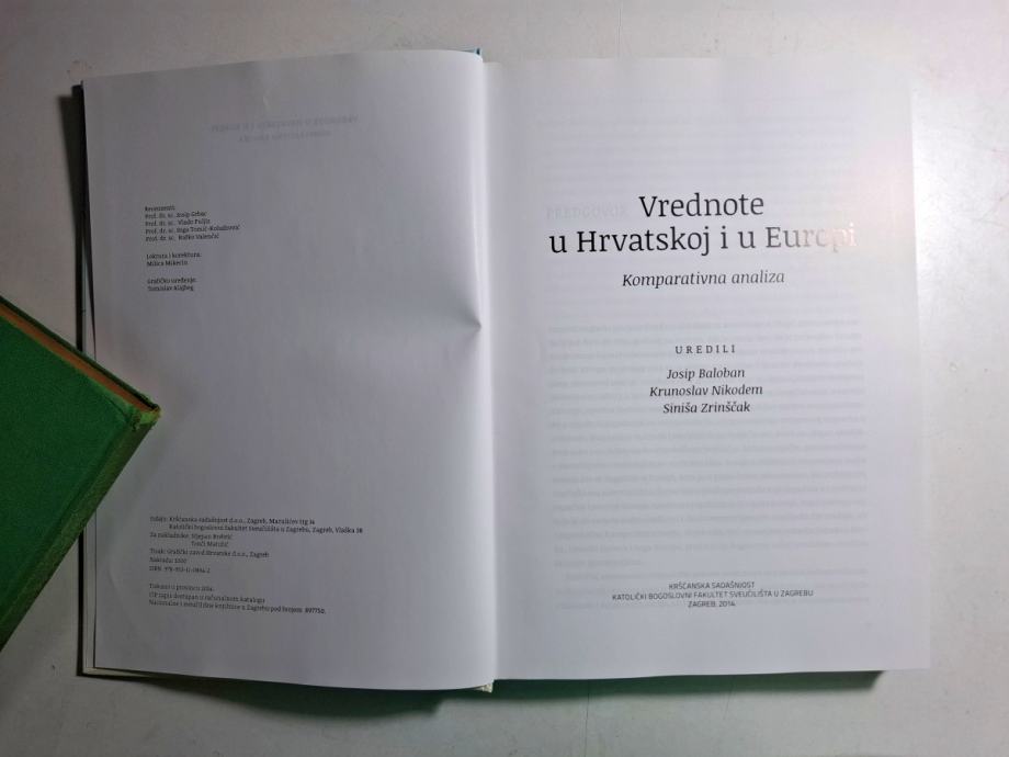 Namijenjena znanstvenom krugu, ali i bilo kome željnom informacija o poziciji Hrvatske na vrijednosnoj karti Europe, ova knjiga plod je istraživanja u sklopu znanstvenoistraživačkog projekta European Values Study, točnije njegovom četvrtom valu u kojem je sudjelovalo četrdeset i sedam europskih zemalja. Razrada tematike je podijeljena u tri dijela: prvi dio obuhvaća religioznost i crkvenost, drugi se bavi temom braka, obitelji, stavova prema djeci i odnosa roditelja i djece, dok je u trećem obrađena problematika socijalne distance i povjerenja u institucije.