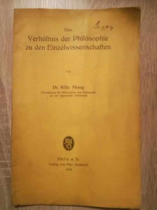 Willy Moog: Das Verhältnis der Philosophie zu den Einzelwissenschaften