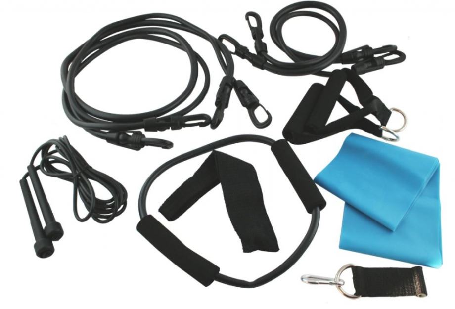 Komplet 4 fitness elastika sa različitim otporima. Moguće je trenirati sa jednom elastikom ili svim skupa. Zarad dodataka možete trenirati i noge. Vijača omogućuje zagrijavanje prije uporabe. Elastike su idealne za jačanje snage ruku. Primjerene su za rehabilitaciju, fizioterapiju i mogu ih koristiti starije osobe.Sve u kompletu:4 elastike1 plava elastična traka2 ručice1 nastavak za gležanj1 nastavak za vratavijačajoga obruč sa otporom