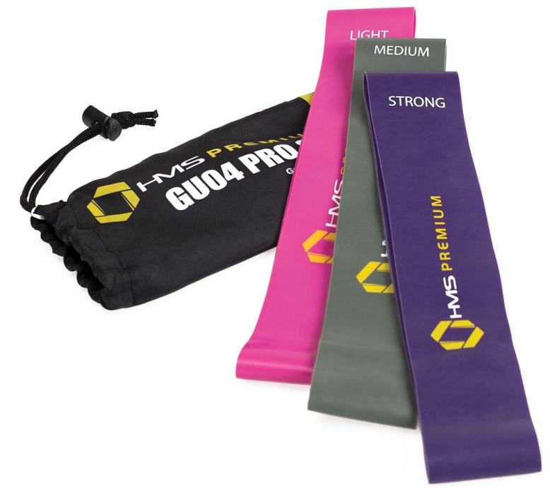 Komplet elastik HMS Premium visoke kvalitete duljine 60 cm, koje koristimo za jačanje, stabilizaciju, mobilizaciju i rehabilitaciju. Vježbanje pomoću elastika poboljšava držanje, opseg gibanja, gradi i tonificira mišiće, pospješuje cirkulaciju i ima pozitivan učinak na zglobove. Koristimo ih za zagrijavanje ili jačanje core mišića, uz to idealan su dodatak svim vježbama.Veličine:600 x 50 x 1,2 mm (roza, laka)600 x 50 x 1,6 mm (siva, srednja)600 x 50 x 2 mm (ljubičasta, teška)