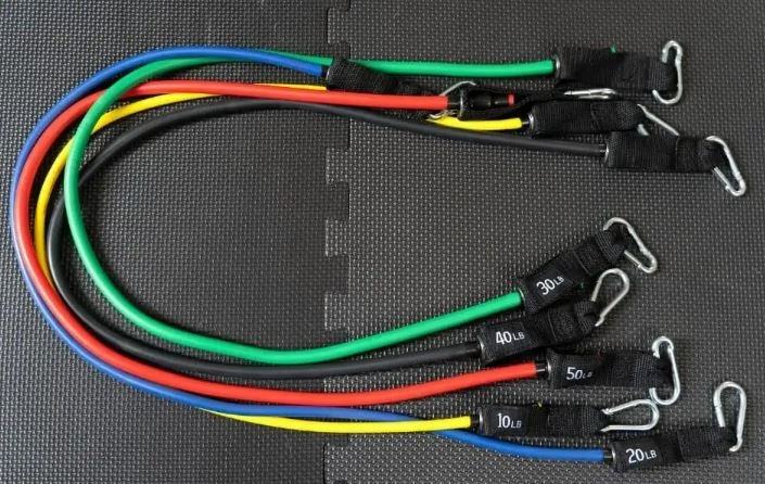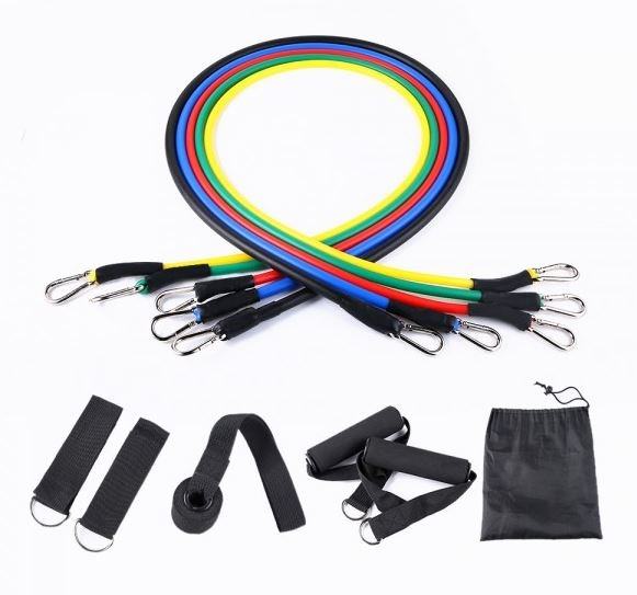 Elastične trake omogućuju raznoliko vježbanje cijelog tijela uz prilagođenu težinu vježbe prema mogućnostima korisnika. Na ovaj način možete vježbati s rukama i nogama, osim toga možete pričvrstiti elastične trake na vrata za različite kutove vježbanja.Sadrži 5 guma s različitim otporom vježbanja:otpor gume 1115 mm - nosivost: 11 kg - crnaotpor gume 1130 mm - nosivost: 10,7 kg - plavaotpor gume 1120 mm - nosivost: 10,6 kg - zelenaotpor gume 1145 mm - nosivost: 9,7 kg - crvenaotpor gume 1110 mm - nosivost: 8,6 kg - žutaDodaci:2 ručke2 dodatka za gležanj1 dodatak za vrata1 vrećica