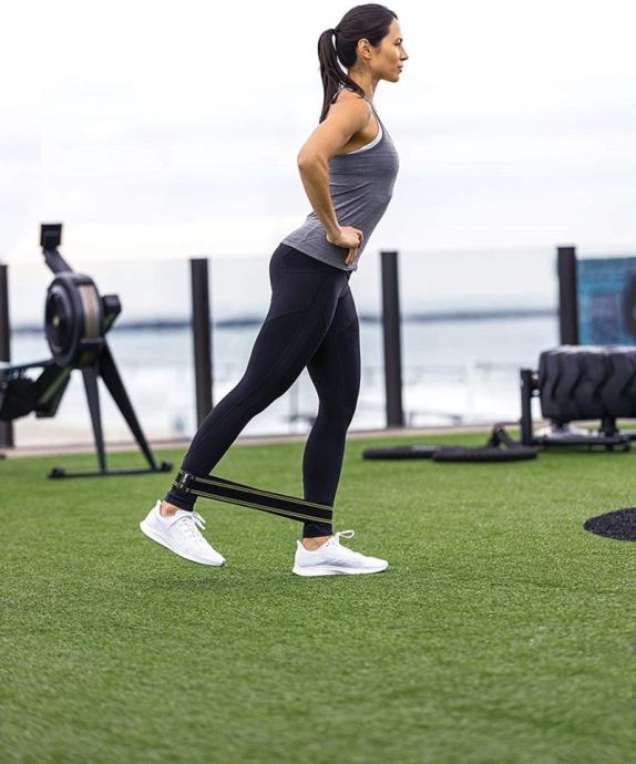 Traka Knit Mini Band Light je pogodna za upotrebu između gležnjeva za duge bočne korake i aktivaciju svih mišića nogu.