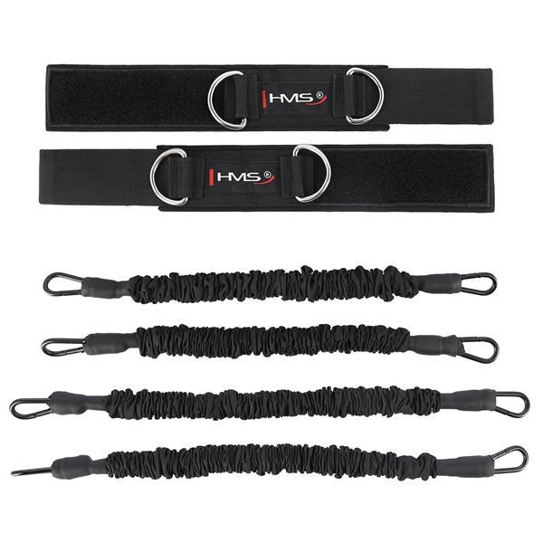 Set elastičnih guma s remenima HMS EXB02 služi za izvođenje kombiniranog treninga mišića nogu s promjenama otpora ovisno o tjelesnoj težini i korištenoj snazi u pružanju otpora. Njihova glavna primjena su vježbe za razvoj mišića stražnjice i cijele grupe mišića bedra.