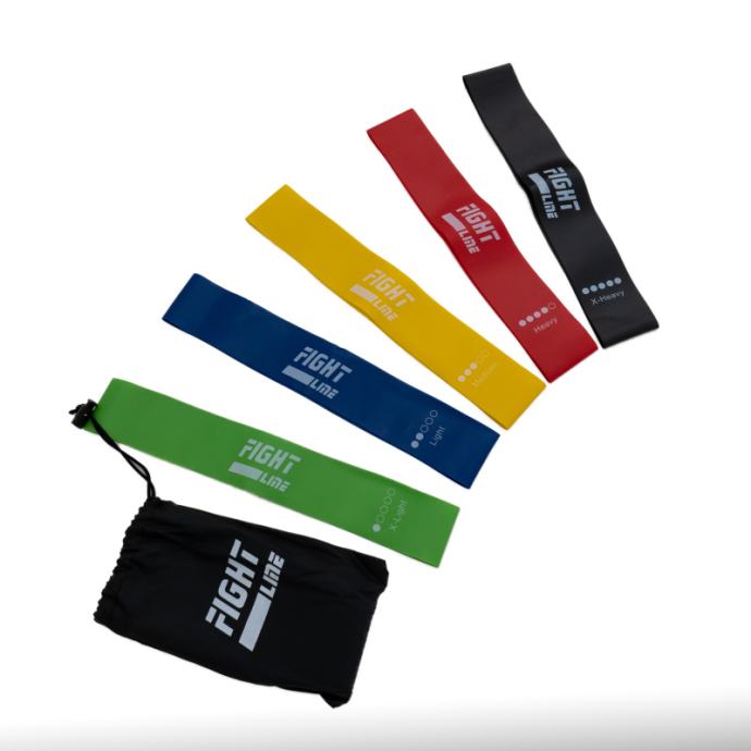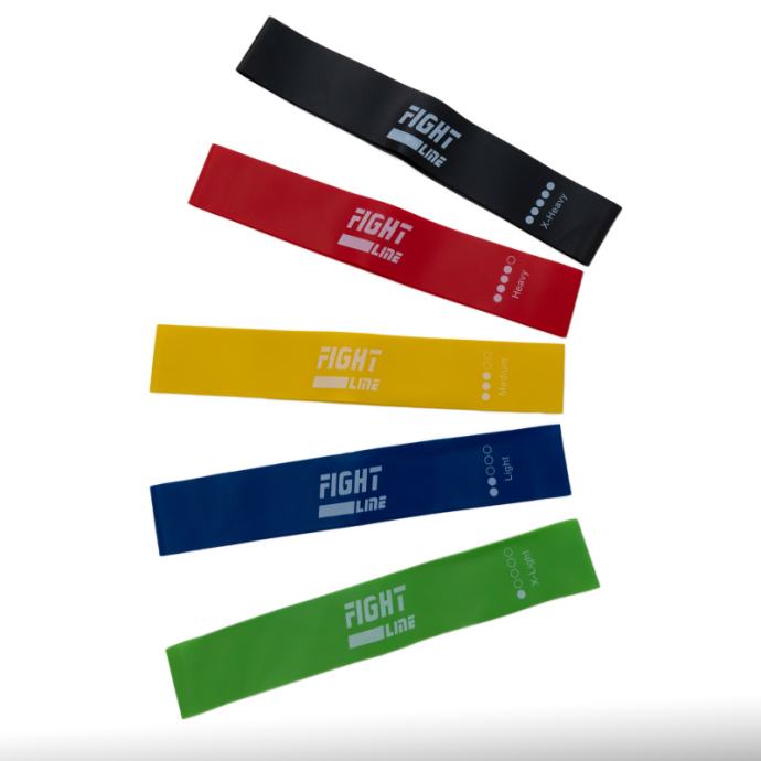 Set elastičnih traka od 5 komada Fight Line služi svakodnevnoj upotrebi za trening pokretljivosti, snage i fleksibilnosti. Odlične su za vježbe istezanja i jačanja mišića nogu i kuka, zagrijavanje, jačanje opće kondicije, za vježbe skakanja, brzine, aerobik, pilates. Služe jačanju gornjeg i donjeg dijela tijela, poboljšanje koordinacije i agilnosti. Pogodne su i u rehabilitaciji i fizikalnoj terapiji.
