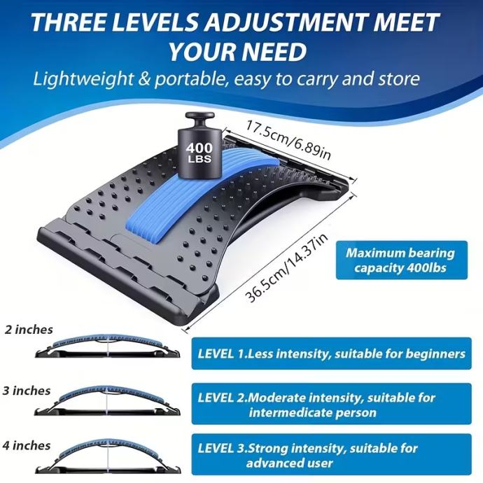 3-stupanjski podesivi steznik za leđa i korektor držanja | Ergonomska lumbalna potpora s funkcijom masaže, sigurne ručke za hvatanje, za gornji i donji dio leđa, ured, automobil, kućnu upotrebu, izdržljiva PP konstrukcija.