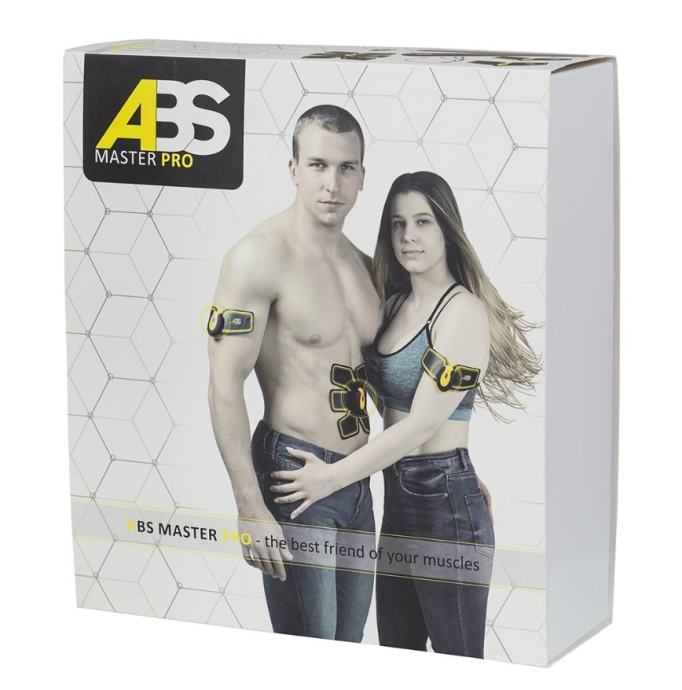 Sve popularniji način oblikovanja i učvršćivanja mišića je sa EMS stimulatorom. Pomoću njega možete oblikovati trbuh, ruke i butine. Električni valovi uzrokuju grčenje i hitro opuštanje mišića. Tako se mišići jačaju i dobijaju na masi u kratkom periodu. Ne opterećuje zglobove. Oblikujte i učvrstite mišiće sa električnom stimulacijom na trbuhu, rukama i nogama. Elektrostimulator za mišiće je napravalje od elektroda i samoljepljivih gelskih uložaka, koji ispuštaju jednosmjerni impuls. Ima ugrađen 20 minutni inteligentni program, koji počinje sa zagrijavanjem mišića, zatim intenzivnom vježbom i na kraju za hlađenjem i automatskim isključenjem. EMS jastučići su napravljeni od mekanog silikona i prilagođuju se pojedinim dijelovima tijela. Posebno oblikovane elektrode i samoljepljivi gel jastučići se prilagođuju svakom dijelu tijela i omogućuju svestrano treniranje. Jednostavno namjestite jastučiće u željeni položaj, kao što su trbuh, ruke, noge, ramena ili leđa.Ab MAster Pro ima 20 stupnjeva intenzivnosti i 6 načina djelovanja. Moguća uporaba za rehabilitaciju i opuštajuću masažu pri niskom intenzitetu. Možete koristiti svoj uređaj tijekom postojećeg treninga, ležanja, rada na računalu i još mnogo toga.Komplet posjeduje:1x ABS uložak sa 6 gelnih jastučića2x uloška za ruke i noge sa 4 gel jastučića3x elektro kutijicePojasDaljinski upravljačBaterija na punjenje za približno 6 sati djelovanja, skupa sa USB kablom za punjenjeTorbica