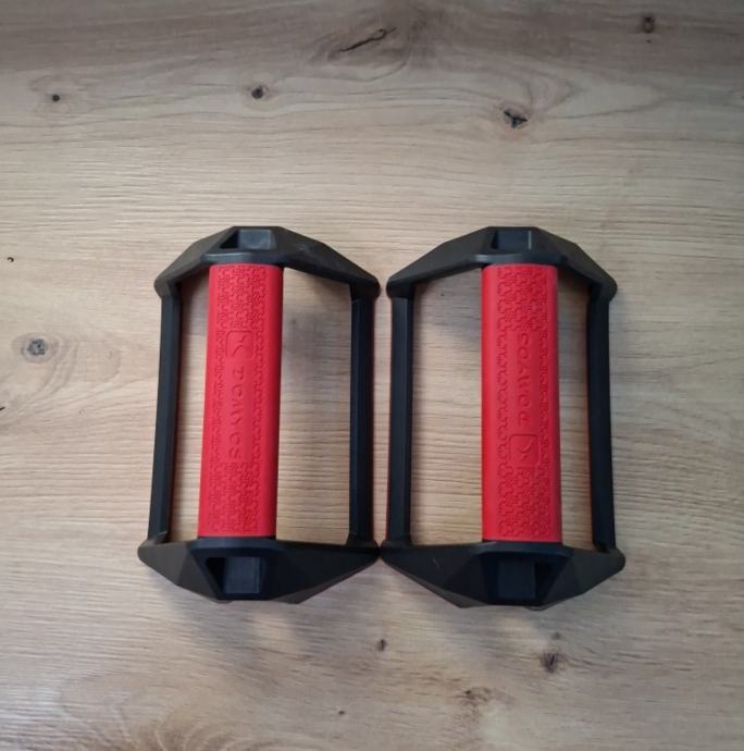 Prodajem potpuno nove Domyos gripove za sklekove u crno-crvenoj boji. Ergonomski dizajnirani s teksturiranom površinom za bolji hvat tijekom vježbanja. Idealni za kućni trening i unapređenje tehnike sklekova.