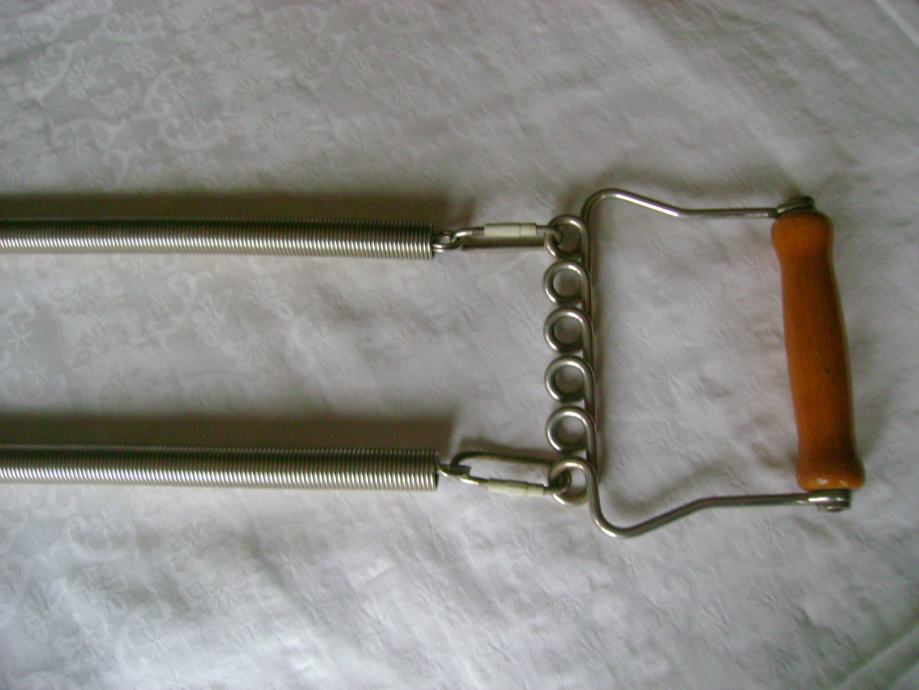 Expander - ekspander; stara sprava za vježbanje prsnih mišića, sa dvije opruge, ukupna dužina sa ručkama je 90 cm - stanje je vidljivo na slikama.