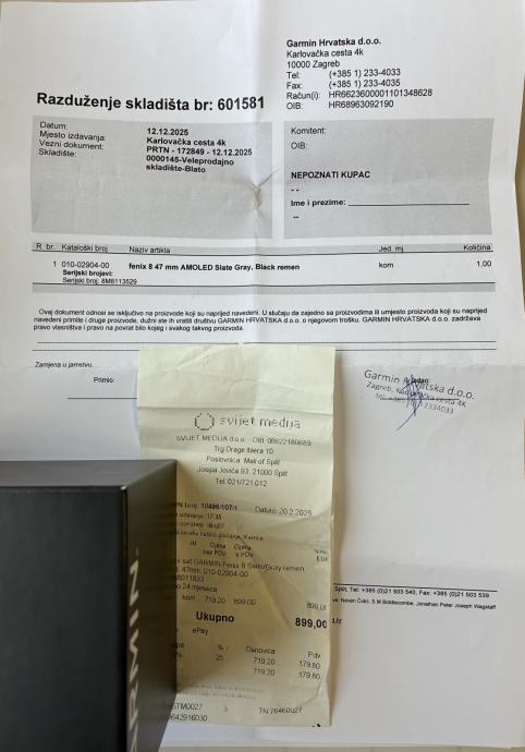Sat je neki dan stigao iz Garmin Hrvatska jer se raniji nije mogao popraviti te je ovaj poslan kao novi umjesto servisa staroga.